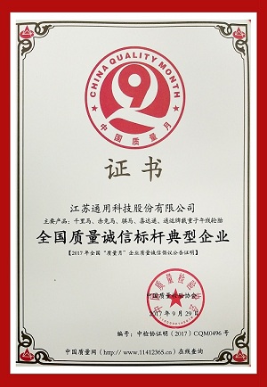 通用股份榮獲“全國(guó)質(zhì)量誠(chéng)信標(biāo)桿典型企業(yè)”