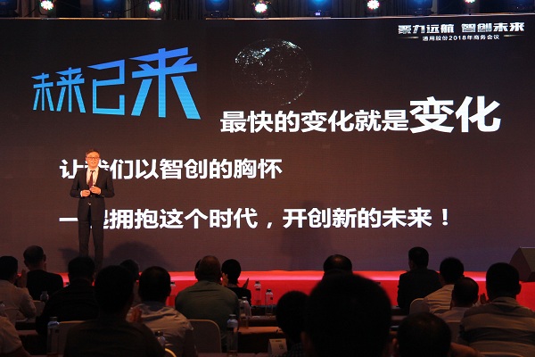 通用股份董事長顧萃先生在會議上作了“賦能2018”的重要主題演講?;厥?017,顧董對宏觀經(jīng)濟和行業(yè)情況進行了生動解讀。展望2018,顧董以“大、新、快、鏈”四個字闡述了當下時代的發(fā)展趨勢,探討了智能化以及創(chuàng)新思維對未來工業(yè)和生活的深遠影響。通用股份將從“制造、產(chǎn)品、營銷、管理、服務”五大賦能促進變革發(fā)展,搶占先發(fā)優(yōu)勢,智能制造升級,全球化視野布局,全方位提高效率,做最好的自己。