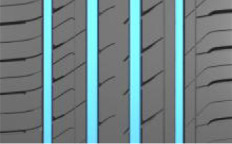 細(xì)溝槽搭配橫向連貫的橫向溝槽,有效切破水膜,提升濕地性能;獨(dú)特的胎面配方設(shè)計(jì),保證優(yōu)異的干濕地操控性能。